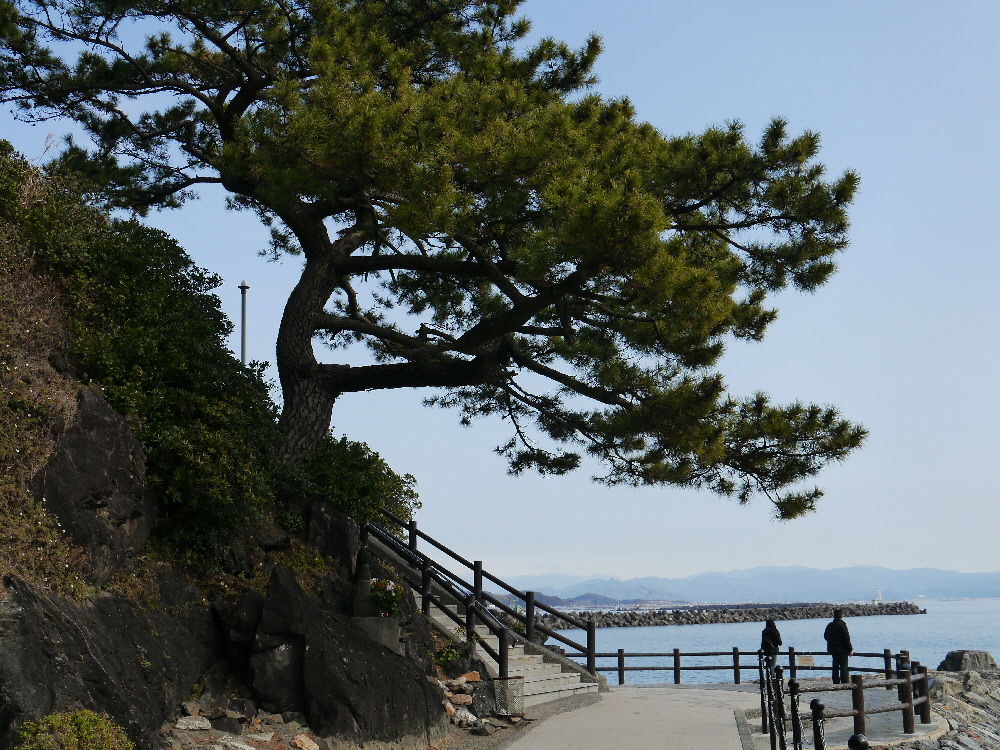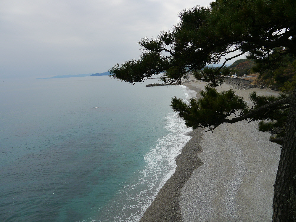 五色の砂浜、浜辺を囲む青松が美しい!