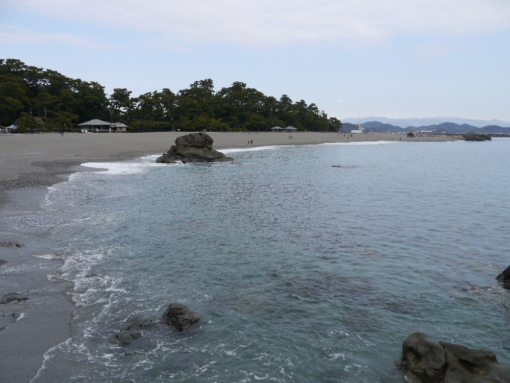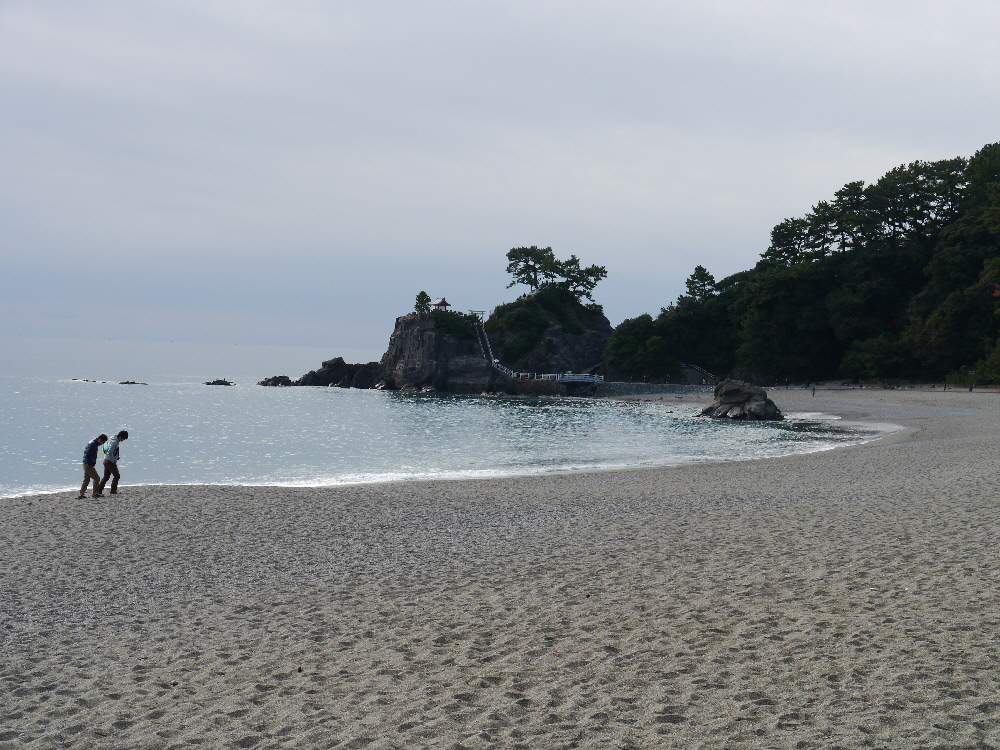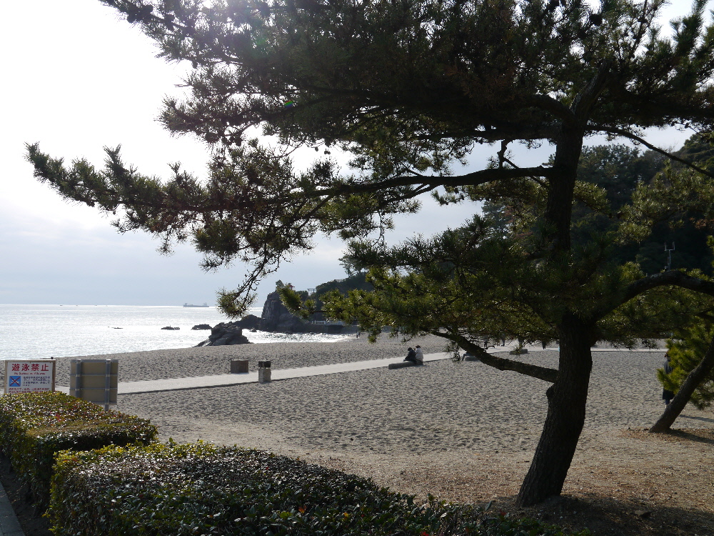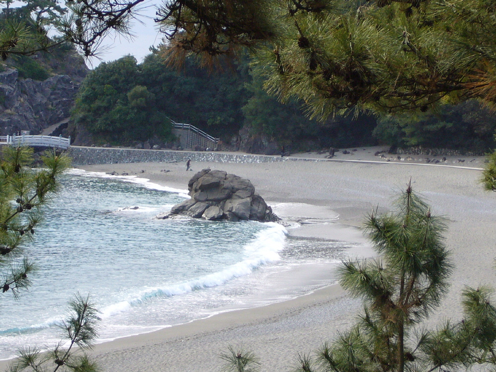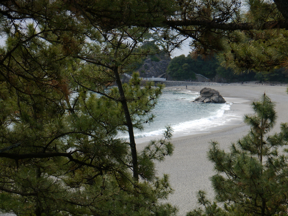 五色の砂浜、浜辺を囲む青松が美しい!
