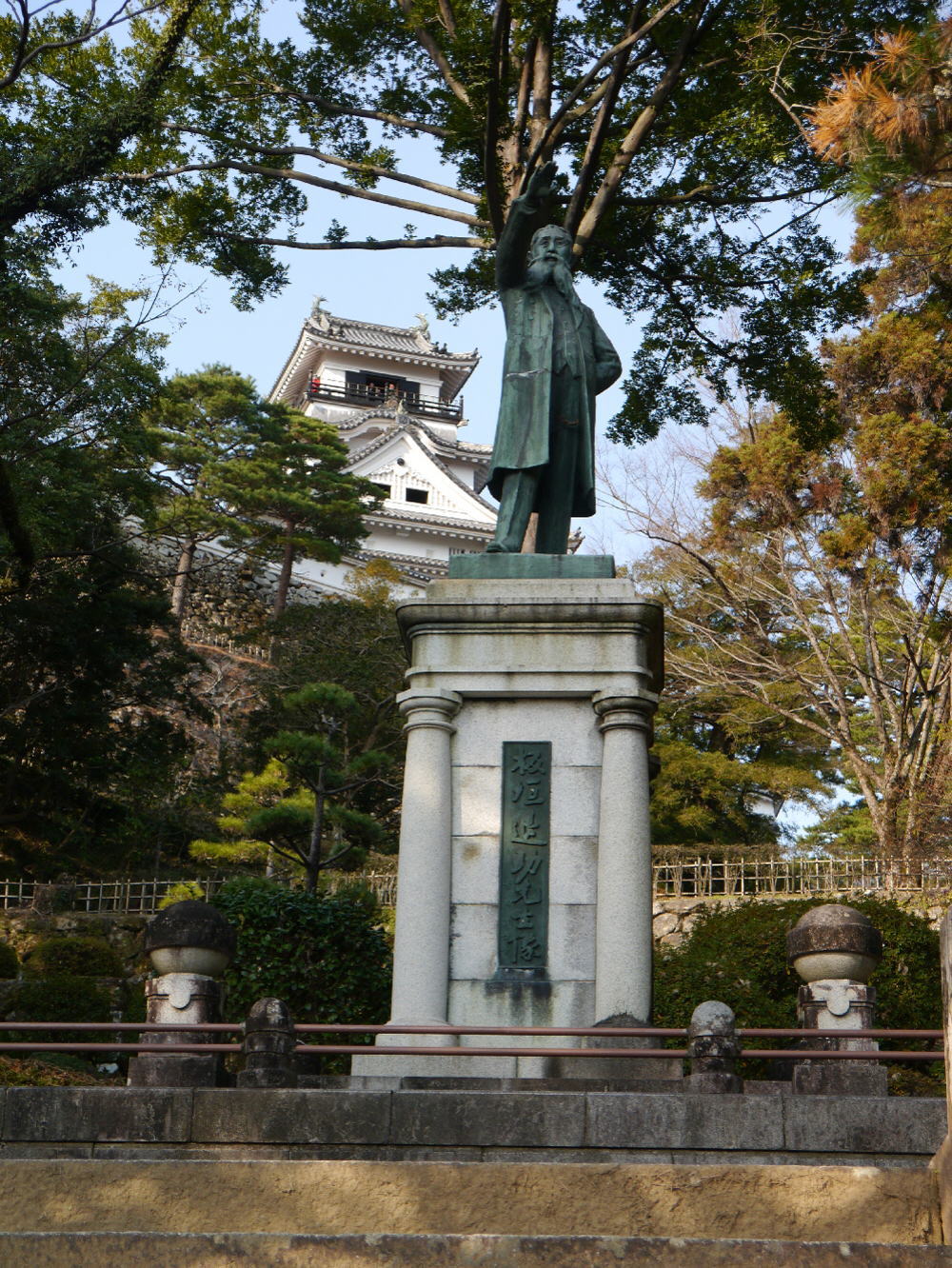 山之内一豊、一豊夫人、板垣退助の銅像がある!